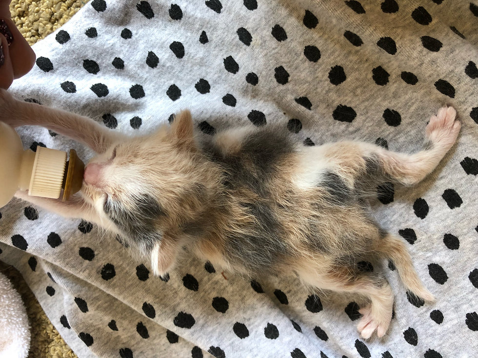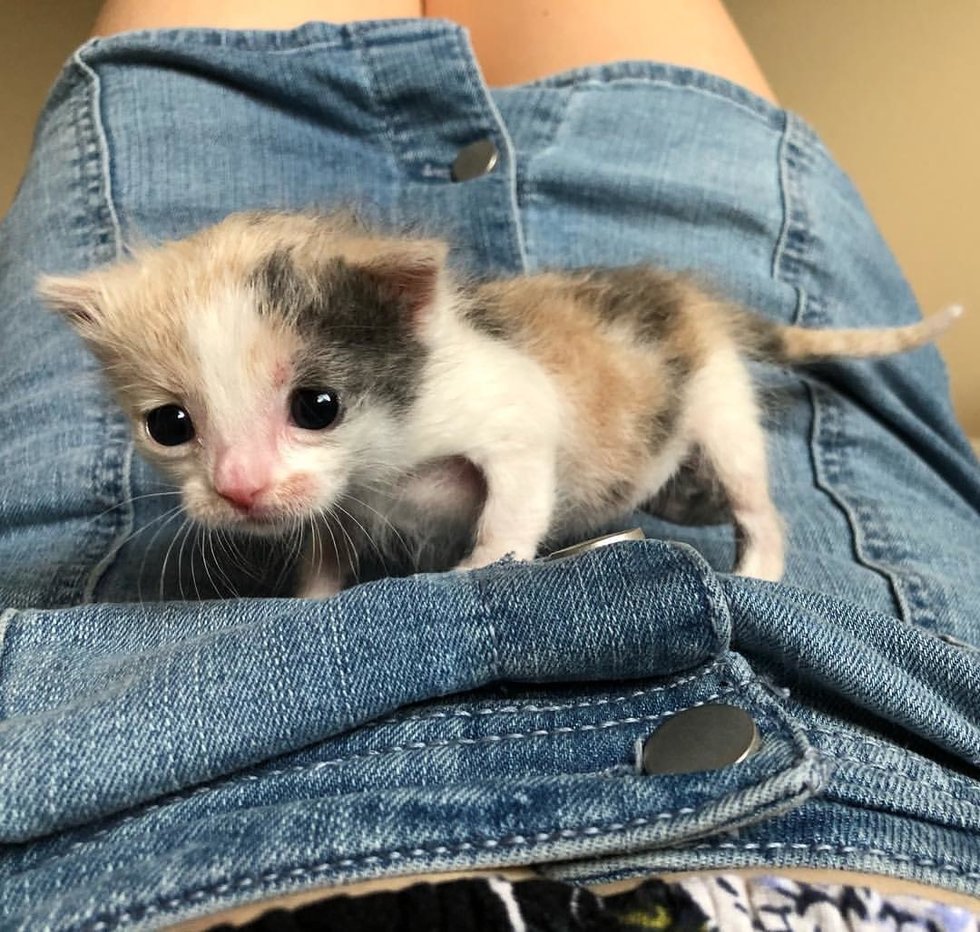 At just a few days old, a tiny calico kitten was found outside by herself. The finder waited for hours but the cat mom never came back for her.