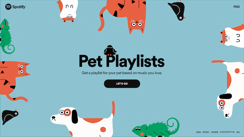 Want to try it? Visit spotify.com/pets on a desktop or mobile device. Once you’ve created your pet’s account, you can access her playlist right away, plus upload the personalized sharecard to your favorite social sites.